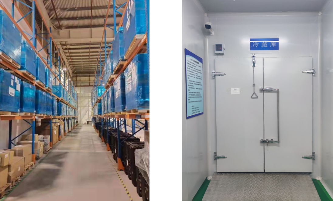 Bonded warehouse covers an area of 1800 square meters, the warehouse adopts fully open three-dimensional shelves, composed of heavy shelves and small dense material shelves, to meet the storage needs of various specifications of goods; Professional cold chain storage conditions, can meet the 2-8 degrees, -20 degrees, and -196 degrees of liquid nitrogen ultra-low temperature storage requirements; Efficient WMS storage management system, one code, one thing, to achieve fine storage goods management; From low temperature storage to domestic transport delivery, the whole cold chain record tracking service.